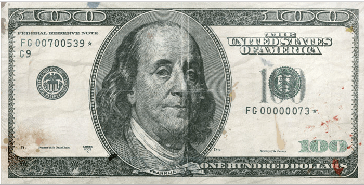 That legal tender featured as one dollar is actually a 100 dollar bill , featuring Benjamin Franklin. They are also referred to in slang as ” Bennies ” .. or “Benjies”… Beniamini in Italian..?