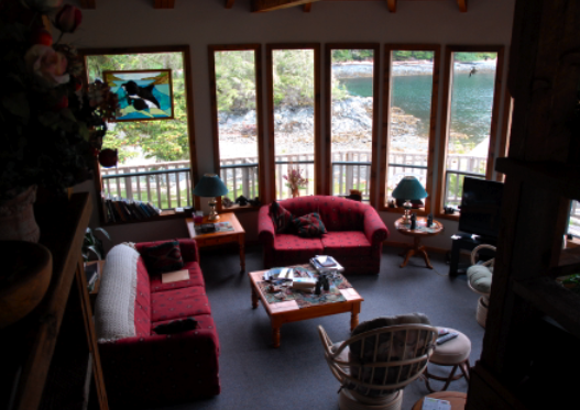 Dan è un canadese sulla sessantina che gira in maglietta quando tutti hanno addosso il pile. 20 anni fa è capitato in questa parte della British Columbia e ha scoperto una piccola baia (Hidden Cove) a 3 km dalla strada: gli piaceva e l’ha comprata. Aperta la strada nel bosco, pian piano ha costruito una casa che col passare del tempo è diventata un lodge con 6-7 camere. Ci siamo capitati per caso e ci è piaciuta subito: entrando si sentiva musica di Enya e poi di Loreena McKennitt.