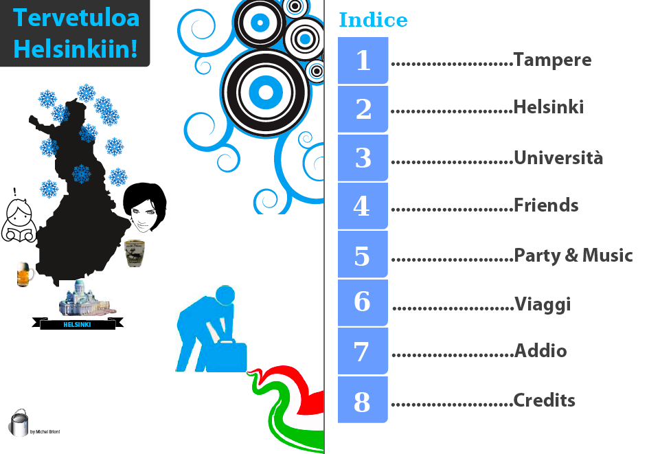Michel Brioni ha trascorso il suo periodo di Erasmus a Helsinki: una bella esperienza che lo ha segnato per sempre e che il suo e-book ci permette di condividere. All’inizio il suo file era di OTTANTA pagine! Diamine, troppe! Di sicuro mi ha maledetto quando gli ho chiesto di limitarsi a una trentina di pagine, eliminare refusi vari e fare alcuni cambiamenti di layout. Il risultato è ottimo: