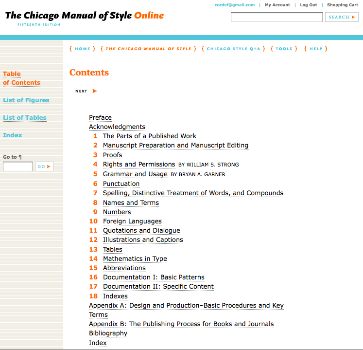 The Chicago Manual of Style è la bibbia di chi scrive e di chi lavora sui testi: autori, ricercatori, laureandi, editor, redattori, ecc. Adesso questo eccellente manuale redazionale è disponibile on-line (→ sito): gratis per 30 giorni e in abbonamento (30$ annui). Un’ottima risorsa che i laureandi italiani di facoltà umanistiche e di comunicazione farebbero bene a conoscere e usare.