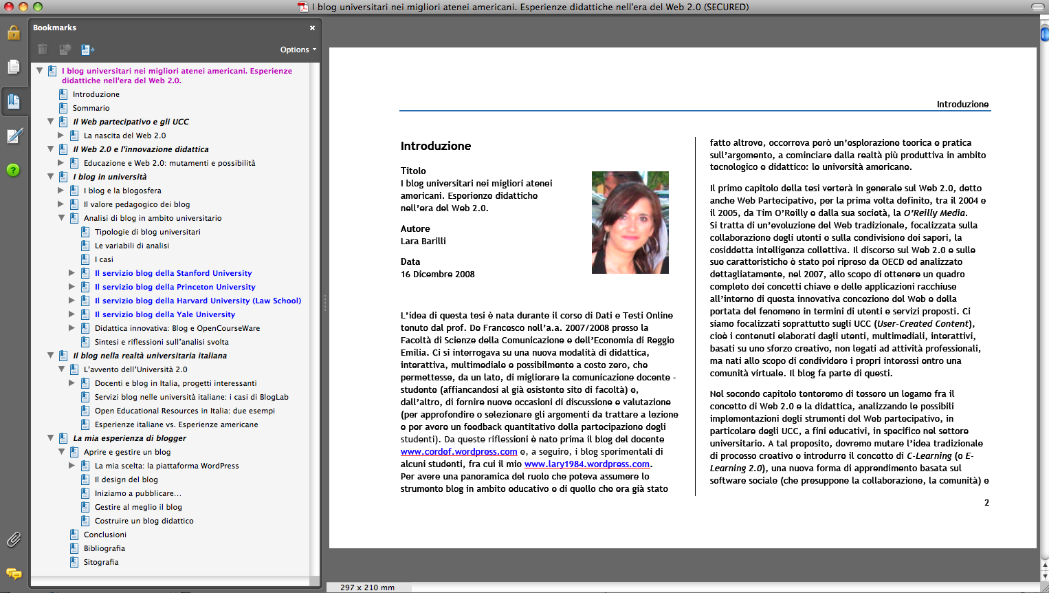 Lara Barilli (laurea specialistica in Nuovi media e comunicazione multimediale) ha terminato la sua tesi I blog universitari nei migliori atenei americani. Esperienze didattiche nell’era del Web 2.0. La tesi è ora scaricabile dal blog di Lara in forma, ovviamente, di e-book (→ post).