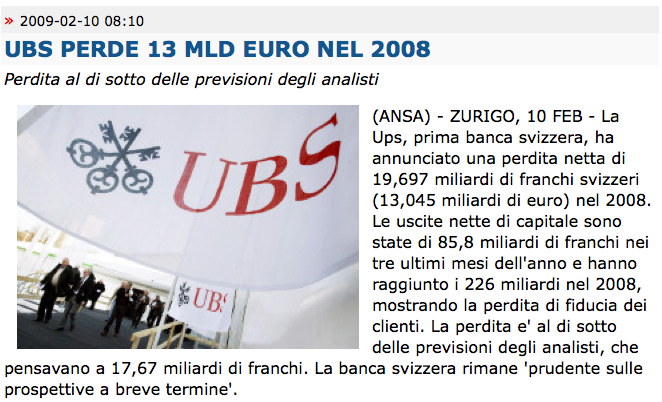 Detto ciò, chissà perché all’ANSA non prendono la buona abitudine di inserire un link alla fonte primaria della notizia, in questo caso al comunicato stampa di UBS (→ UBS press release 10.02.2009).