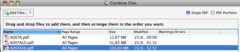 vorrei dei chiarimenti in merito all’ordinamento delle pagine: quando inserisco i miei file nel pdf cumulativo adobe li ordina in ordine alfabetico non rispettando l’ordine logico da me dato, perciň devo spostare le pagine.
