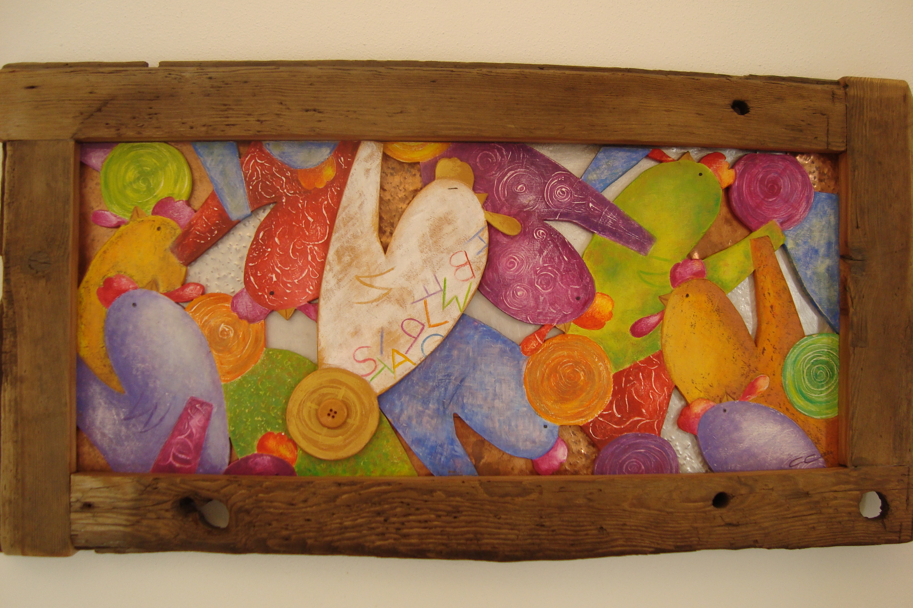 Cosa dire? A noi piace molto la fantasia con cui Cristina reinterpreta i temi della tradizione valdostana. Una delle sue opere l’abbiamo posta davanti alla finestra in casa: la sua vista nei giorni di pioggia ci riscalda il cuore.