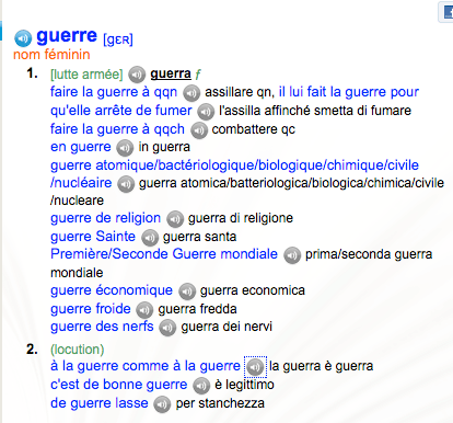 altrove avevo già segnalato un paio di risorse web utili per cercare parole straniere e magari sentirne anche la pronuncia. Oggi sono però capitato per caso sulla pagina web dei dizionari Larousse: strepitosi! Eh sì perché → qui non trovi solo la traduzione e la pronuncia di un termine ma intere frasi.