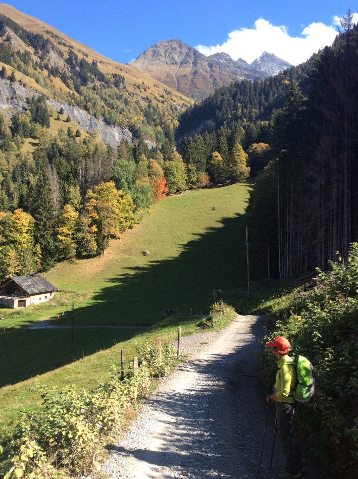 Il giorno seguente abbiamo optato per gli Chalet del Miage: si lascia l’auto al parking di Gruvaz (5 km. dopo Saint Gervais) e da lì si scende sino al primo tornante per prendere la pista che sale nel bosco verso Le Say. Dopo il villaggio la pista finisce per diventare sentiero.