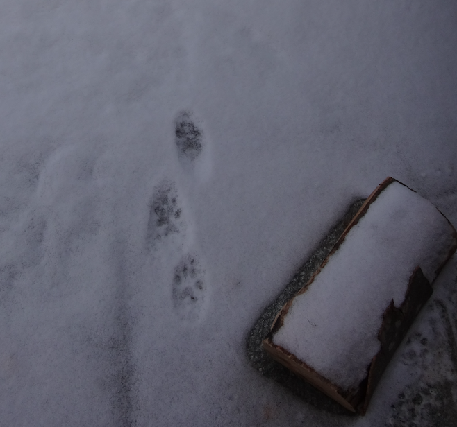 La prima sciata della stagione sconta il poco sonno: alle 3 ci siamo svegliati per strani rumori. Era la faina che sgranocchiava qualcosa che avevamo lasciato fuori per la volpe. Nel buio impossibile fotografarla quindi accontentati delle tracce trovate alla mattina.